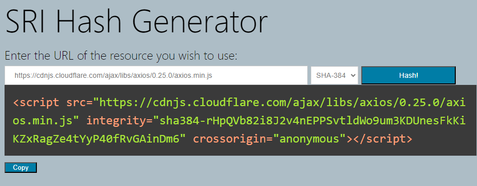 SRI Hash Generator